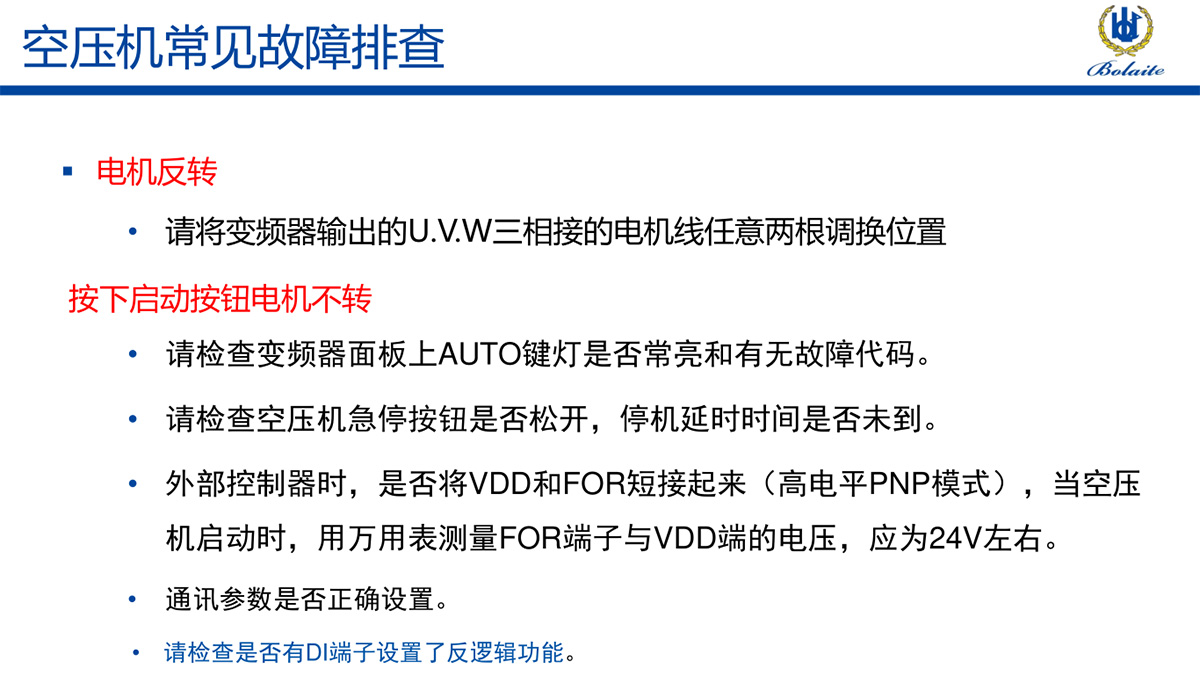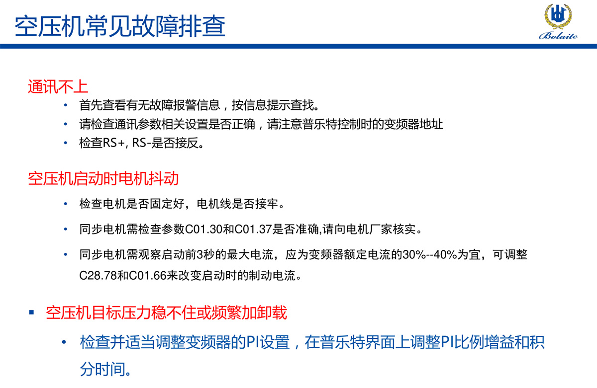 -> 空壓機安裝注意事項及常見故障處理